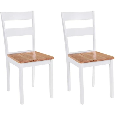 VidaXLThis set consists of two rubberwood dining chairs in a classic design and will make a great addition to your dining room. The solid, sanded rubberwood has been given a paint finish for the frames and the seats, which brings out the wood's rich, warm colour. The contrast in colours adds to the chairs' simple yet stylish appearance. Delivery includes 2 chairs. Assembly is very easy.