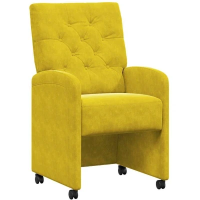 vidaXL Dining Chairs with Wheels 2 pcs Yellow 58 x 67 97 cm Velvet