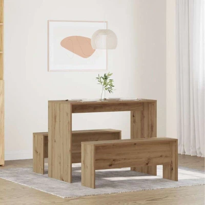 vidaXL Dining Table & Bench Set 3 Piece, Engineered Wood, Atisian Oak Finish, Rectangular Shape, Modern Dining/Kitchen Furniture, L: 97 cm x W: 47 H: 75 cm, 92 23.5 c...
