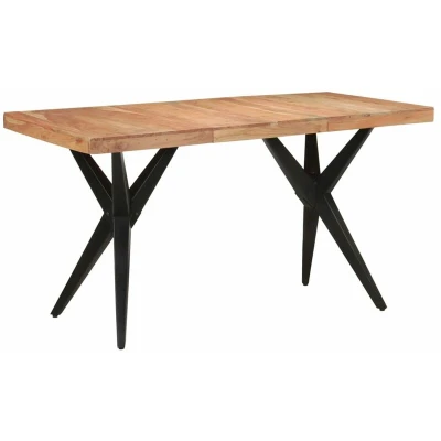 ManoManoGeneral description Enjoy the perfect meal time with your family or friends on this industrial-style dining table every day! The table features a beautiful solid acacia wood top, known for its density, sturdiness, and durability, complemented by a stable powder-coated iron frame. Technical specifications Material: Solid acacia wood with bleach finish, powder-coated iron Dimensions: 140 x 70 x 76 cm (L x W x H) Assembly required: Yes SKU: 351640 Other information Colours and grains vary per furniture item, making each piece unique. The delivery is random, ensuring the exclusivity and individuality of your product.
