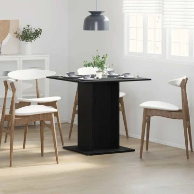 ManoManoGeneral description Bring an air of clean minimalist style to your dining area with this distinctive dining table! The simple elegance of this dining table will make everyday dinners special. Technical specifications Colour: Black oak Material: Engineered wood Dimensions: 80 x 80 x 75 cm (L x W x H) Assembly required: Yes Usage Stable and durable material: Engineered wood is a durable and stable material with a smooth surface that is resistant to moisture, warping, and splitting, making it a reliable choice for a variety of projects. Practical tabletop: The sturdy tabletop of the dining room table is perfect for placing meals, drinks, and other decorative items. Easy maintenance: Thanks to its smooth surface, the dinner table is easy to clean with a damp cloth and requires less maintenance. Other information
