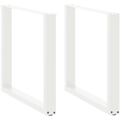 ManoManoGeneral description These dining table legs combine form and function, making them an ideal choice for customizing your dining table. Made of durable powder-coated steel, these legs are sturdy and long-lasting, featuring a square-shaped design that can support a heavy tabletop. The practical design includes adjustable foot levelers for stability on uneven floors and minimizes floor scratches. With pre-drilled holes and included screws, assembly is straightforward. Technical specifications Colour: White Material: Powder-coated steel Overall size: 80 x (72-73) cm (W x H) U-Shaped Tube dimensions: 80 x 40 x 1 mm (L x W x T) Bracket dimensions: 800 x 80 x 4 mm (L x W x T) With adjustable plastic levelers Assembly required: Yes Delivery contains: 2 x Dining table leg, Screws (M5x18mm) for fixing legs with table top Other information