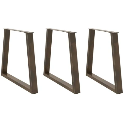 General description These dining table legs combine form and function, making them an ideal choice for customizing your dining table. Crafted from durable powder-coated steel, these legs are sturdy and long-lasting. The modern aesthetics feature clean lines and a geometric design that enhances the overall appearance of your furniture. Technical specifications Material: Powder-coated steel Colour: Natural steel Overall size: 70 x (72-73.3) cm (W x H) Tube dimensions: 80 x 40 x 1 mm (L x W x T) Bracket dimensions: 540 x 80 x 4 mm (L x W x T) Includes adjustable plastic levelers Delivery contains: 3 x Dining table leg, screws (M5x18mm) for fixing legs with table top Installation The dining table legs come with pre-drilled holes and include screws for easy assembly, allowing you to fix the legs to your tabletop (not included). Usage These legs are recommended for use with dining tables and desks, providing a stable and stylish support. Other information