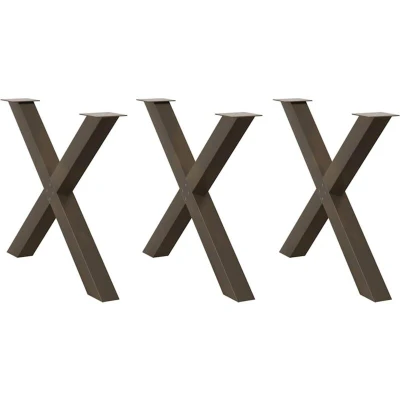 ManoManoGeneral description These dining table legs combine form and function, making them an ideal choice for customizing your dining table. The X-shaped design ensures stability and support for a heavy tabletop. Technical specifications Colour: Natural steel Material: Powder-coated steel Overall size: 90 x (72-73) cm (W x H) Bracket dimensions: 140 x 140 x 4 mm (L x W x T) Tube dimensions: 80 x 80 x 1.2 mm (L x W x T) With adjustable plastic levelers Assembly required: Yes Delivery contains: 3 x Dining table leg, Screws (M5x18mm) for fixing legs with table top Compatibility and accessories Recommended use: dining table, desk Installation Includes pre-drilled holes and screws for easy assembly. Usage Suitable for use with any tabletop of a compatible size. Other information