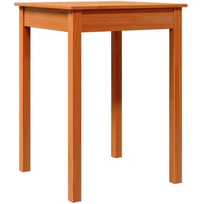 General description Add a touch of minimalist style and elegant charm to your kitchen and dining room with this classic wooden dining table. Made from solid pine wood, it features a straight grain and rustic knots that enhance its natural beauty. The stable wooden frame ensures sturdiness and stability, making it a perfect spot for placing snacks, drinks, vases, fruit bowls, and your favorite decorative items. This versatile dining table can also serve as a counter table or restaurant table to meet your different needs. Technical specifications Colour: Wax brown Material: Solid pine wood Dimensions: 55 x 55 x 75 cm (L x W x H) Assembly required: Yes Other information