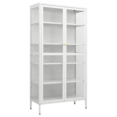 【Easy Assembly】: Assembly is required but it's very straightforward. All necessary hardware and instructions are included. Completed assembly dimensions are 90cm wide, 40cm deep and 180cm high 【Sturdy Construction】: Constructed with high-quality steel and tempered glass ensuring durability and reliability for years. This white display cabinet offers stability for safe use and can survive rough handling 【Convenient Care】: The cabinet is effortless to clean. Just wipe it with a damp cloth and it looks as good as new. This storage & display cabinet meets all your needs and enhances your home decor 【Display Purpose】: This cabinet serves as an excellent display unit with 4 adjustable shelves. Organize your books, magazines, decorative items, and more. The tempered glass door allows you to showcase your collection 【Adjustable & Spacious】: Comes with 4 height-adjustable shelves, providing comfortable storage space based on your needs. A perfect choice for living rooms, home offices, or any room that requires additional storage