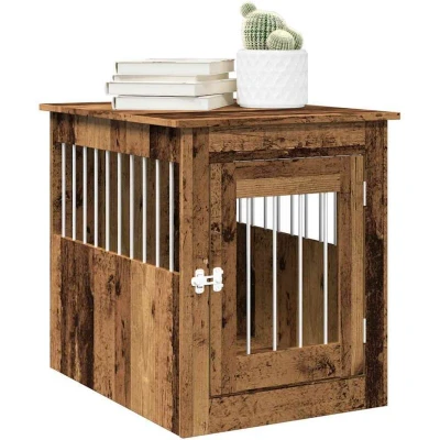 ManoManoGeneral description This dog crate furniture serves as both a dog cage and an end table, making a practical and eye-catching addition to your living room. It perfectly combines style and functionality, providing your furry friend with a cozy spot to nap while also offering a surface for your favorite decorations. Technical specifications Colour: Old wood Material: Engineered wood, steel Overall dimensions: 55 x 75 x 65 cm (W x D x H) Door size: 48 x 38 cm (L x W) Suitable dog's length: 65 cm Maximum dog weight capacity: 45 kg Cage top weight capacity: 40 kg With lockable door Assembly required: Yes Other information