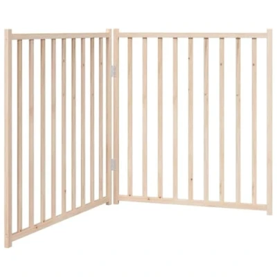 vidaXL Dog Gate Foldable 2 Panel Fir Wood Pet Barrier Freestanding, Easy Fold, Stability Feet Arched Top Design 80 x 90 cm, Brown