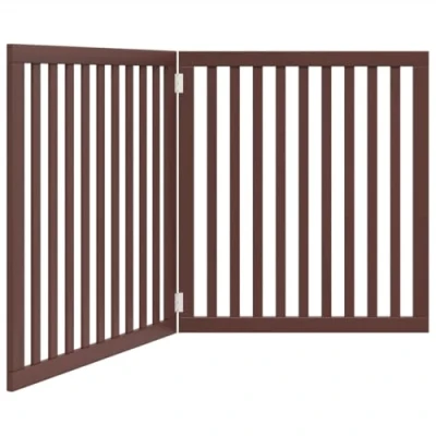 vidaXL Dog Gate Foldable 2 Panels, Brown, Poplar Wood No Installation Required Each Panel: 80 x 90 cm, Total Length: 160 Bar Spacing: 6 cm Perfect for Living Room, Kitchen, Stairwa...