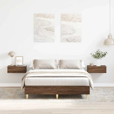 General description Get a better restful night's sleep with this stylish bed frame! It makes a welcoming addition to any bedroom. Technical specifications Colour: Brown oak Bed frame material: Engineered wood, solid eucalyptus wood Slat material: Plywood Overall dimensions: 193 x 138 x 25 cm (L x W x H) Suitable mattress size: 135 x 190 cm Double (W x L) (mattress is not included) Assembly required: Yes SKU: 861072 Usage Durable material: The engineered wood is of exceptional quality with a smooth surface, offering strength, stability, and resistance to moisture. Slatted base for optimal support: The bed frame is equipped with a slatted base for support and breathability for your mattress. Stable and durable legs: This bed is supported by sturdy legs, ensuring stability, safety, and firmness. Other information