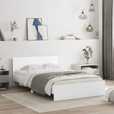 vidaXL Double Bed Frame with Headboard Engineered Wood White Home Base Bedstead for Bedroom, 135x190 cm Mattress Size, Modern Design, Plywood Slats