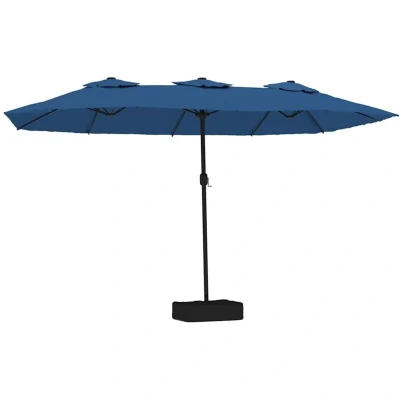 vidaXL Double Head Garden Parasol with LEDs Azure Blue 449x265 cm