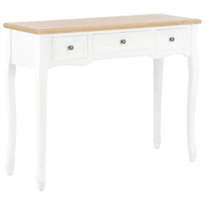 VidaXLOur console table, featuring a simple yet timeless design, will surely make a great addition to your living room, dining room, hallway, and more. The table features excellent workmanship combined with great functionality. Thanks to its compact design, our console table occupies very little space and fits into smaller areas. Three smooth-rolling drawers offer you additional space for your ornaments, cosmetics and other private belongings. This dressing table is constructed from high quality MDF and pinewood with white painted finish for durability, which gives you years of service.