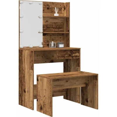 vidaXL Dressing Table Set with LED Old Wood Engineered