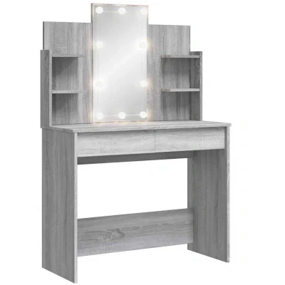 vidaXL Dressing Table, Vanity Table for Bedroom Room, Makeup Desk with LED Lights, Cosmetic Modern Style, Grey Sonoma