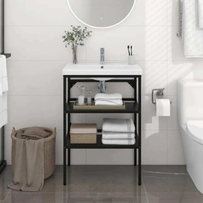 vidaXL Durable and Weather Bathroom Washbasin Frame Made of Powder Coated Iron Black Measures 59x38x83 cm