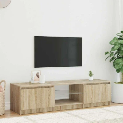 vidaXL Durable Engineered Wood TV Cabinet Smoked Oak, Modern Look, RGB LED lights, Ample Storage, Measures 140x40x35.5 cm
