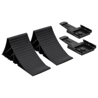 VidaXLThese wheel chocks can effectively help you to keep your trailers safely in place. Durable material: Made of durable plastic, the wheel stopper is strong and robust.Smart design: The clever design helps the wheel blocker slot into an angle with great ease. Also, the ribbed top surface allows wheels to grip on for a prolonged time, which allows you to keep the car stable for ultimate safety.Practical mounting bracket: The mounting bracket can be used to securely mount the wheel chock to a trailer, caravan, etc. that is not in use.Easy installation: The chock block is light enough to be lifted and installed by one person. It is also convenient to transport and remove.