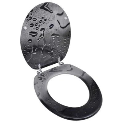 vidaXL Durable Toilet Seat with MDF Lid, Intricate Water Drop Design, Chrome Zinc Alloy Hinges, Universally Suitable for All Common Bowls