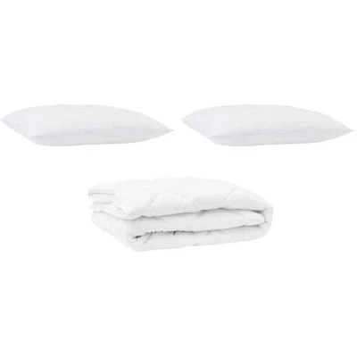 ManoManoGeneral description This versatile Modern Duvet with Pillows epitomizes comfort and style. Crafted for bedrooms that prioritize simplicity and functionality without compromising on luxury, this duvet features clean lines and minimal ornamentation, aligning with the modern aesthetic. The duvet's white finish allows for easy integration into various bedroom décors, making it both a practical and elegant choice. This duvet is perfect for those who enjoy the cozy feel of microfiber blended with cotton, offering an inviting atmosphere for relaxation and restful nights. Whether you are enhancing your master suite or setting up a guest bedroom with a touch of class, this duvet set captivates with its sophisticated simplicity and utmost comfort. Technical specifications Colour: White Material: Microfibre Overall dimensions: 200 x 220 cm (L x W) Weight: 3.03 kg Filling material: Microfiber Includes: 1 x All-season duvet, 2 x Pillow Indoor use only EAN: 8721288615626 SKU: 3377523 Brand: vidaXL