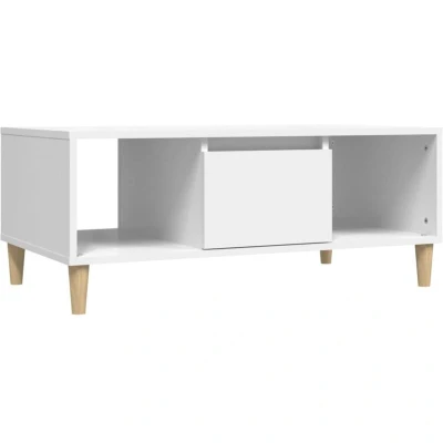 vidaXL Elegant Rectangular Coffee Table Modern White Living Room Furniture with Drawer and Compartment Durable Engineered Wood Metal Legs