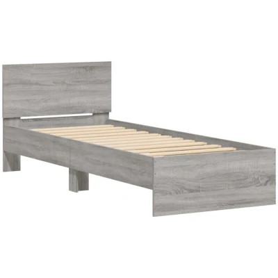 vidaXL Engineered Wood Bed Frame&Headboard Small Single 75x190 cm, Grey Sonoma, Sturdy Slats for Bedroom Comfort