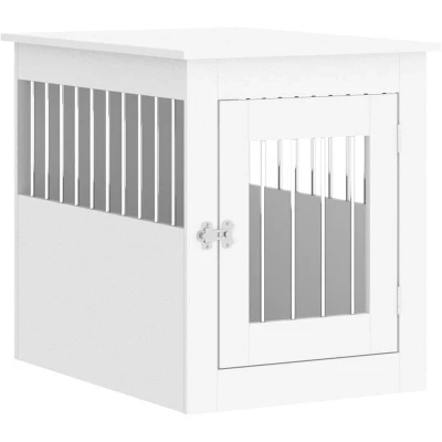 'vidaXL Engineered Wood Dog Crate Furniture Doghouse Kennel Cage with Lockable Door, Steel Wire Windows, and Tabletop 55x75x65 cm White