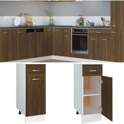 vidaXL Engineered Wood Drawer Bottom Cabinet in Brown Oak Durable Kitchen Storage Unit with 1 and 2 Compartments Easy to Clean
