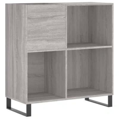 vidaXL Engineered Wood Record Cabinet in Grey Sonoma Vinyl Storage, LP Holder, Modern Design, Industrial Style with Iron Feet
