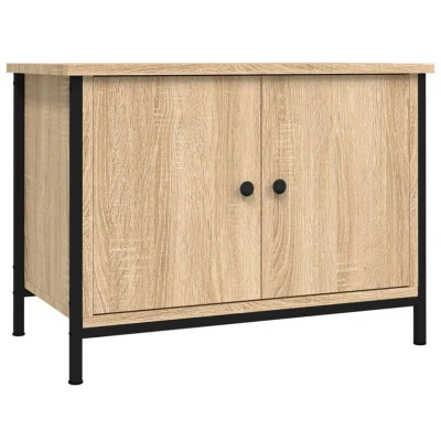 vidaXL Engineered Wood TV Cabinet with Doors Sonoma Oak Finish, Sturdy Display Top, Metal Feet, Easy Assembly, Modern Industrial Design for Living Room and Bedroom