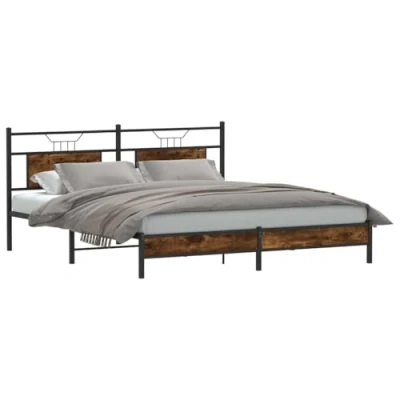 vidaXL Engineered Wood/Steel Bed Frame 160x200 cm Smoked Oak Finish with Headboard and Storage