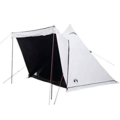 vidaXL Family Tent Tipi 6 Person Dome White Blackout Fabric Waterproof & Wind Portable and Lightweight Easy Setup with Detachable Rainfly Zippered Doors
