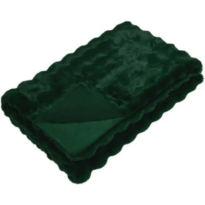 vidaXL Faux Rabbit Fur Blanket Dark Green 240 x 270 cm Polyester
