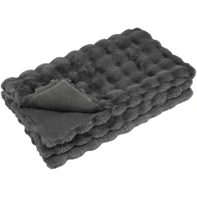 ManoManoThis Faux Rabbit Fur Blanket brings a touch of luxury and warmth to indoor spaces, ideally suited for those who value comfort and style during the winter months. Exhibiting a modern aesthetic with clean lines and minimal ornamentation, the blanket aims to blend effortlessly into living rooms adorned with contemporary decor. Its visual appeal is matched by a soft, plush texture that enhances its inviting and cozy presence. Whether draped over couches or used as an additional layer on your bed, this blanket enhances the ambiance and warmth of your space through its captivating design and tactile allure. Plush Bubble Texture Offering a delightful touch experience, the plush bubble texture elevates the blanket's tactile qualities. Perfect for snuggling during cool evenings, it adds depth and character to the overall appearance. Skilfully integrated for a visually rich finish, the texture complements the faux pelt's high-end style, making it a must-have for adding luxurious warmth to any