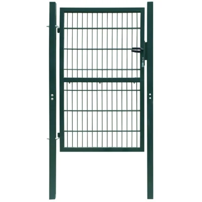 This fence gate will make a practical, contemporarily styled entryway to seclude your garden from the outside world. Highly stable and durable, the fence gate will form a practical security barrier for your garden, patio or terrace. Welded with thick vertical wires and double horizontal wires to give extra rigidity, our garden gate will provide a high degree of security, while forming a fabulous entryway onto your property. Manufactured from heavy-duty steel, the gate is powder coated against rust and corrosion. This fence gate comes with sturdy hinges for easy installation, and a heavy-duty locking system with 2 matching keys is also included in delivery. This garden gate is a great combination of style, strength, stability and corrosion resistance! Colour: Green Material: Steel with a powder-coated finish Overall size: 106 x 248 cm (W x H) Gate panel size: 82 x 200 cm (W x H) Adjustable width: 103-105 cm Embedded depth: 35-40 cm Mesh size: 5 x 20 cm (W x H) Post tube size: 6 x 6 cm