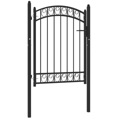 VidaXLThis fence gate forms a practical security barrier for your garden, patio or terrace. Thanks to its elegant arched top design and strong horizontal braces to reinforce the frame, this garden gate provides a high degree of security while forming a fabulous entryway onto your property. Manufactured from heavy-duty steel, the fence gate has a sturdy construction and has been powder coated against rust and corrosion. It comes with two solid posts along with sturdy hinges for easy installation, and a locking system with three matching keys is also included in delivery.