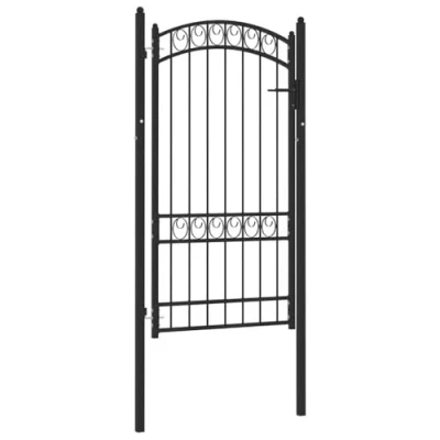vidaXL Fence Gate with Arched Top Steel 100x175 cm Black