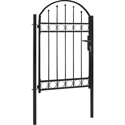 vidaXL Fence Gate with Arched Top Steel 104x150 cm Black