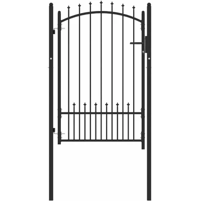 ManoManoGeneral description The Modern Fence Gate with Spikes adds a contemporary touch to any outdoor space. This rectangular gate features clean lines and a subtle style, providing both aesthetic appeal and functionality. Made from powder-coated steel, it is designed to withstand the elements, making it ideal for gardens and terraces. Technical specifications Dimensions: 100 x 150 cm Material: Powder-coated steel Colour: Black Weight: Durable Design: Arched top with spikes Compatibility and accessories Includes: 1 x Fence gate 2 x Fence posts Sturdy hinges 3 Matching keys Installation Assembly required: Yes Delivered with two sturdy posts and hinges for easy installation Usage Suitable for outdoor use only Minimal maintenance required; simply wipe with a damp cloth to maintain its appearance Other information