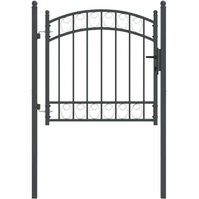 ManoManoGeneral description This modern Fence Gate crafted from powder-coated steel adds both security and aesthetic appeal to your outdoor space. Its arched top design and simple elegance make it a functional yet stylish addition to gardens or terraces. Suitable for use during spring and summer, it creates a charming gateway that can be used to define spaces or enhance the overall look of your outdoor area. Technical specifications Colour: Grey Material: Powder-coated steel Overall dimensions: 104 x 154 cm (W x H) Weight: 14.5 kg Included Components 1 x Fence gate 2 x Fence Posts Sturdy hinges 3 Matching keys Secure Deadbolt Locks Strong deadbolt locks provide solid security for your property. Locks require a key for access, offering peace of mind in securing your garden or terrace. Care & Maintenance Cleaning is simple with just a damp cloth to wipe down the gate. This straightforward upkeep ensures the gate maintains its allure and effectiveness. Other information