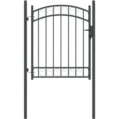 ManoManoGeneral description This modern Fence Gate crafted from powder-coated steel adds both security and aesthetic appeal to your outdoor space. Its arched top design and simple elegance make it a functional yet stylish addition to gardens or terraces. Suitable for use during spring and summer, it creates a charming gateway that can be used to define spaces or enhance the overall look of your outdoor area. Technical specifications Colour: Grey Material: Powder-coated steel Overall dimensions: 104 x 175 cm (W x H) Weight: 15.9 kg Included components 1 x Fence gate 2 x Fence posts Sturdy hinges 3 x Matching keys Secure deadbolt locks Strong deadbolt locks provide solid security for your property. Locks require a key for access, offering peace of mind and functionality in securing your garden or terrace. Care & Maintenance Cleaning is simple and requires nothing more than a damp cloth to wipe down the gate. This straightforward upkeep guarantees your fence gate maintains its allure and