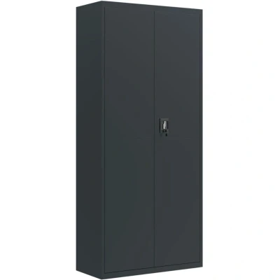 ManoManoGeneral description This extra high file cabinet, featuring a simple yet stylish design, is an excellent choice for keeping your files and other office supplies well organized. Technical specifications Colour: Anthracite Material: Powder-coated steel Dimensions: 90 x 40 x 200 cm (W x D x H) Maximum load capacity per shelf: 30 kg Features 4 adjustable shelves Lockable doors with 2 keys Assembly required: Yes Installation To prevent it from being overturned, this product must be used with the provided wall attachment device. Usage The storage cupboard features 4 adjustable shelves, allowing you to neatly sort your files into different categories. This office cabinet provides ample space for storing your files and other office supplies. This lockable design guarantees that files and essential documents are safe. Other information