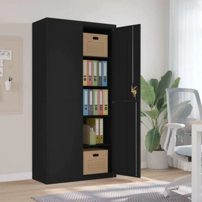 VidaXLThis file cabinet, featuring a simple yet stylish design, will be a great choice for keeping your files and other office supplies well organised. Durable material: Steel is an exceptionally hard and strong material. It offers sturdiness and stability. The powder coating on the surface of steel creates a protective layer against rust, corrosion, and wear. Made of powder-coated steel, the filing cabinet is also easy to clean and maintain.Adjustable shelves: The storage cupboard features 4 adjustable shelves, allowing you to neatly sort your files into different categories.Ample storage space: This office cabinet provides ample space for storing your files and other office supplies.Lockable system: This lockable design guarantees that files and essential documents are safe. Warning:To prevent it being overturned, this product must be used with the provided wall attachment device.