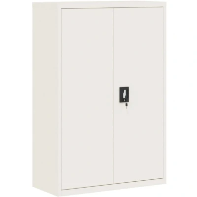 General description This file cabinet, featuring a simple yet stylish design, is an excellent choice for keeping your files and other office supplies well organized. It is made of durable powder-coated steel, providing sturdiness and stability while being easy to clean and maintain. Technical specifications Colour: White Material: Powder-coated steel Dimensions: 90 x 40 x 140 cm (W x D x H) Maximum load capacity per shelf: 30 kg Features 3 adjustable shelves Lockable doors with 2 keys Assembly required: Yes Usage The storage cupboard features 3 adjustable shelves, allowing you to neatly sort your files into different categories. This office cabinet provides ample space for storing your files and other office supplies. The lockable design guarantees that files and essential documents are safe. Other information Warning: To prevent it from being overturned, this product must be used with the provided wall attachment device. Images: