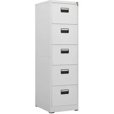 VidaXLThis filing cabinet, with a modern design, is ideal for file storage. This office cabinet is made of steel, making it durable as well as easy to clean. With 5 drawers and 1 lock, this file cabinet allows you to neatly sort your files into different categories and keep files safe. Each drawer is equipped with 1 removable hanging bar, which can be freely combined to store legal size and A4 hanging file folder. Drawers with 3 sections ballbearing runners ensure smooth opening and closing, even under increased load, these drawers can be fully extended. The file cabinet will suit any office decor thanks to its iconic design.