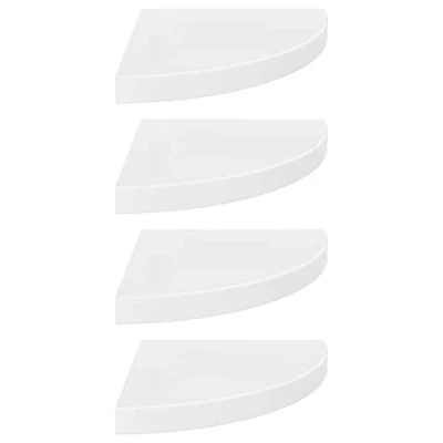 VidaXLThis set of 4 stylish corner shelves is ideal for displaying your favourite books, decoratives, photos, awards, etc. This display shelf, made of quality honeycomb MDF and strong metal, is stable and durable. With an invisible mounting system, the wall shelf is easy to install and serves as the perfect place to store the items such as awards, books, collectables, ornaments, etc. This floating shelf suits any decor and turns an empty wall into a designer feature!