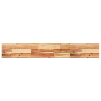 ManoManoGeneral description Transform your bare wall into a design accent and a practical, space-efficient storage area with this wooden floating shelf. Made from solid acacia wood, it is robust and stable, known for its strength and durability. The diverse colors and unique grain patterns give it an attractive appearance, making it ideal for both indoor and outdoor furniture. Technical specifications Material: Solid acacia wood with an oil finish Dimensions: 160 x 20 x 4 cm (L x W x T) Shape: Rectangular Usage Can be arranged in various patterns, such as right-left, upper-down, or in a ladder-like design. Maximizes unused wall space, converting it into a compact and efficient storage area. Suitable for various settings including kitchen, bathroom, living room, bedroom, study, and garage. Other information Each item is unique with variations in colors and grains. The delivery includes one wall shelf only; screws and brackets are not included. It is recommended to reapply an oil finish at