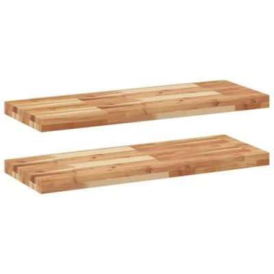Transform your bare wall into a design accent and a practical, space-efficient storage area for your living space with these wooden floating shelves! Robust and stable material: Solid acacia wood is known for its strength and durability. Its diverse colours and unique grain patterns give it an attractive appearance. With excellent stability and resistance to weathering, it is ideal for crafting indoor and outdoor furniture.Oil-finished surface: This shelf board is made of acacia wood with an oil finish that makes it more resistant to moisture and water damage, while also preserving its unique character.Randomly DIY: You can arrange the shelves in a random pattern, like right-left, upper-down, or in a ladder-like design. By using more wall shelves, you can create unique and personalised patterns.Space saving: This floating shelf maximises unused wall space, converting it into a compact and efficient storage area.Wide applications: This versatile wall-mounted shelf can be used in various settings, such as kitchen, bathroom, living room, bedroom, study, garage, etc. Good to know:Each item is unique with variations in colours and grains. The delivery is random, ensuring the exclusivity and individuality of your product.The delivery includes wall shelves only. Screws and brackets are not included in the delivery.It is recommended to reapply an oil finish to maintain its quality and appearance at least once a year.