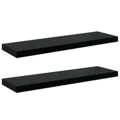 vidaXL Floating Wall Shelves 2 pcs in High Gloss Black Modern & Durable Honeycomb MDF Metal Frame for Living Room, Bedroom, Office