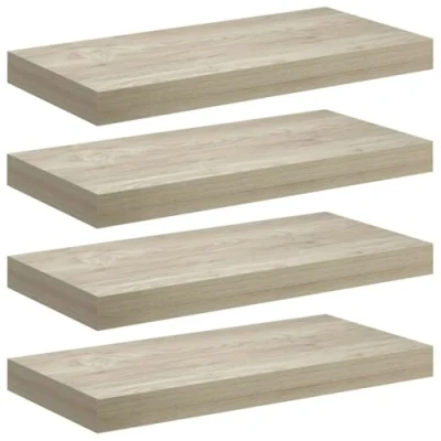 vidaXL Floating Wall Shelves Set 4 pcs, Oak Color, Invisible Mounting System, Ideal for Living Room, Bedroom, Office 50x23x3.8 cm